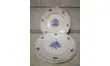 4 assiettes en céramique bleu et filet argenté sur le tour.