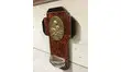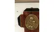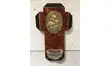 Bénitier en bois avec habillage en bakélite, deux barrettes en laiton sont manquantes ( haut et bas ) remplacées par une peinture doré.