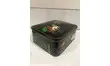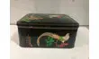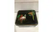 Ancienne boite en métal noir avec décor d'oiseaux du monde.