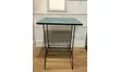 Bout de canapé des années 60 avec piètement en métal noir ( décapé et repeint ) et plateau repeint en bleu nordique.