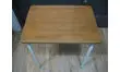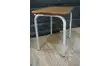 Petit bureau entièrement décapé et restauré. Le plateau en chêne a été vernis en chêne clair, le piètement a été repeint en blanc lin.