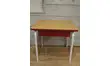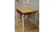 Petit bureau d'école entiérement relooké.La structure tubulaire est peinte en blanc.Tiroir et chant du plateau peint en rouge brique,petit adhésif assorti à l'intérieur.Plateau en formica marron clair d'origine.