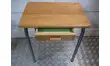 Bureau ancien décapé et repeint en gris martelé pour le piètement. Son plateau en bois massif a été décapé et vernis en chêne clair.
