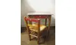 Le bureau est peint en gris "giboulée" sur le plateau,tiroir en rouge "tomate confite".Le reste a été conservé en bois.Finition vernis satin.