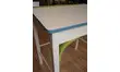 Le casier à été recouvert d'un papier à rayures bleues et vertes.Couleurs reprises pour le bureau.