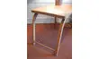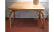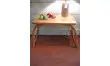 Un ancien petit bureau des années 60 en bois teinté chêne doré.A imaginer aussi en table basse pour le salon.