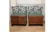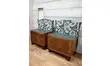 Chevet Art Déco, forme moustache. Décapé , plateaux peints en vert "tempête" et vernis. Papier peint coquelicot sur le fond. Placage vernis.
