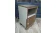 Chevet Art Déco , décapé et peint en beige. Vernis satin sur les parties bois.