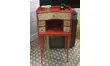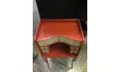 Chevet anncien de style Louis XV,peint en rouge tomate confite.Cinq tiroirs peints dans differents tons de beige puis patinés.Finition ciré.