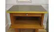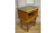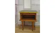 Ancien chevet années 50 en bois.Dessus peint en grain de café avec une touche de jaune moutarde sur la tranche du plateau.
