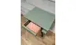 Entièrement poncé et repeint en vert tilleul et piètement en noir.