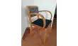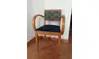 Fauteuil Bridge des années 50 entièrement restauré. Le bois a été décapé et vernis en chêne doré. Assise et dossier retapissé.