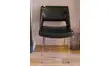 Beau et confortable fauteuil des années 50.Design proche du fauteuil conférence de Eero Saarinen.Piétement carré en métal chromé avec patins articulés.Revêtement en simili cuir en très bon état.