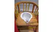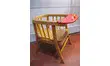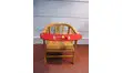 Ancienne chaise pot de style Baumann,années 50.Entiérement décapée et revernis en chêne doré.Tablette réparé et peinte en rouge.Pot plastique blanc.Tarces d'usures sur les barreaux jaunes.