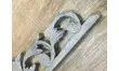 Ancien fronton en bois décapée et peint en gris clair patiné.