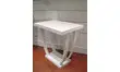 Un guéridon entiérement décapé et repeint en blanc "plume".Finition vernis satin.