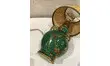 Petite lampe de chevet ou d'appoint en céramique vert et décor or.