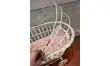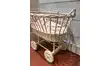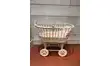 Landau de poupée en rotin , peint en blanc.