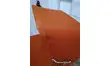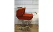 Landau de poupée des années 70 en tissu aspect velours orange. Intérieur doublé d'une toile enduite à petites fleurs.