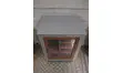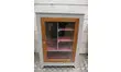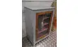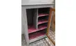 Meuble de rangement avec porte vitrée.Intérieur aménagé avec des étagères.Parfait comme meuble complémentaire de rangement.Décapé et peint en gris acier et rose bruyère.