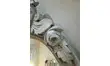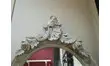 Miroir en bois sculpté et décor végétal. Décapé et peint en lin beige et patiné.