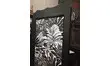 Paravent en bois des années 50, décapé et peint en noir et grain de sable, deux panneaux sont recouverts d'un papier peint jungle noir et beige.