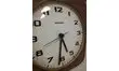 Pendule des années60 en formica marron. En parfait éta de fonctionnement. Nécessite une pile AA.