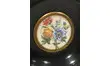 Petit cadre en bois noir et médaillon floral peint sur porcelaine.
