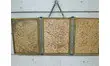 Petit miroir triptyque , cerclage laiton ciselé. Dos d'origine en carton , motif fleurs rose / beige.