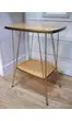 Petite sellette,pieds en métal doré,plateaux en stratifié beige clair.Entièrement démontable.