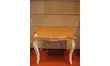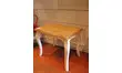 Un table basse ou bout de canapé.Les pieds sont peints en blanc et viellis par endroit.Le dessus est laissé en bois brut ciré.