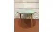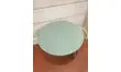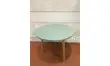 Table basse tripode années 60, dont le plateau a été peint en vert tilleul, finition vernis satin.