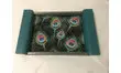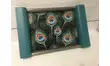 Petit plateau des années 50 entièrement relooké avec un tissu enduit motif plumes de paon.