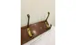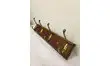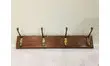 Porte manteaux en bois avec 4 crochets en métal doré.