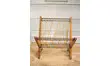 Ancien porte-revues années 50 en bois et métal.Tressage en corde orange.
