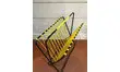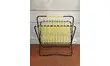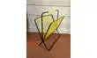 Porte revues en fer noir torsadé . Rénovation de la peinture noire et du scoubidou jaune neuf ( respect de la couleur d'origine).