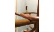 Porte-manteaux perroquet en bois. ( bois + plâtre+ teinte+ vernis )