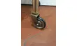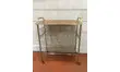 Table porte vinyles des années 60 en métal doré et plateau en stratifié imitation bois.