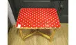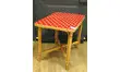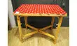 Table en rotin recouverte d'un adhésif rouge à pois blanc.Parfaite en petite table de jeux pour les plus jeunes.A imaginer en table de chevet ou en bout de canapé au salon.