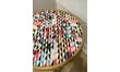 L'assise est recouverte d'un tissu enduit au motif pop et coloré.