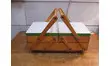 Le dessus a été peint en gris et vert avec la reprise du vert à l'intérieur.Le papier adhésif est d'origine,dans le fond un nouveau papier jaune à pois a été posé.