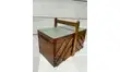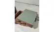 Bois vernis et plateau repeint en vert tilleul, finition vernis satin.