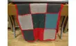 Couverture entierement tricotée main dans un mélange laine/acrylique.Dominante de rouge,gris,bleu turquoise.